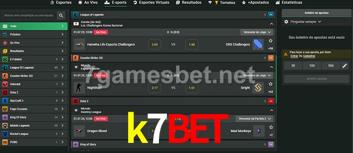 O k7bet oferece uma grande seleção de opções de apostas em e-sports com probabilidades competitivas
